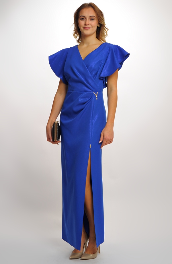 Tyto luxusní dlouhé plesové šaty v syté královsky modré barvě jsou skvělou volbou pro všechny ženy, které hledají výjimečné společenské šaty na ples, večerní šaty nebo šaty na maturitní ples. Jemně třpytivý materiál dodává šatům slavnostní vzhled, ve kterém na sebe poutáte pozornost při každé společenské příležitosti.