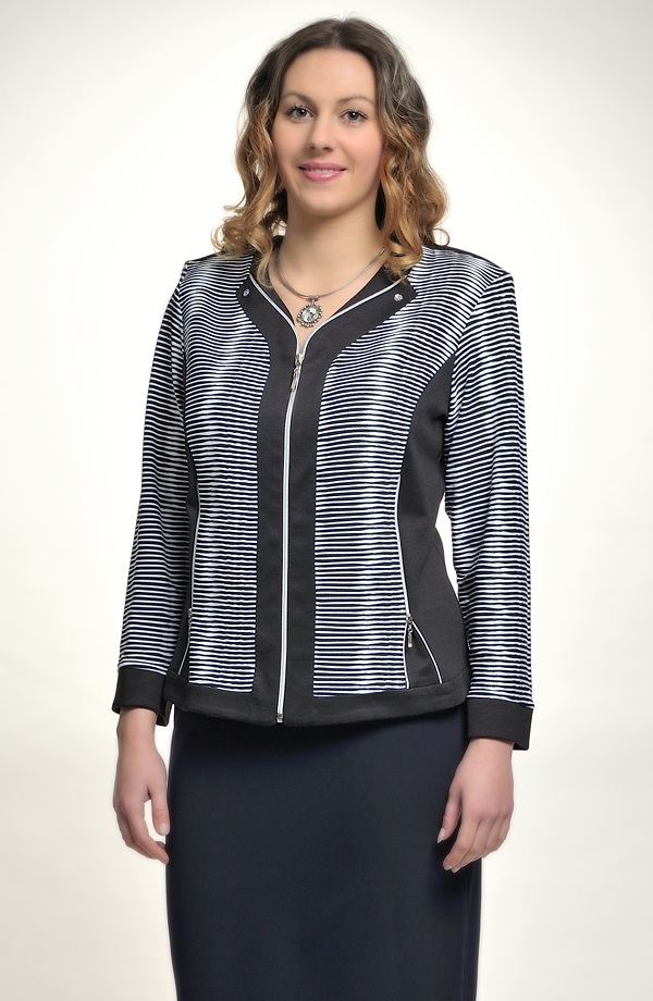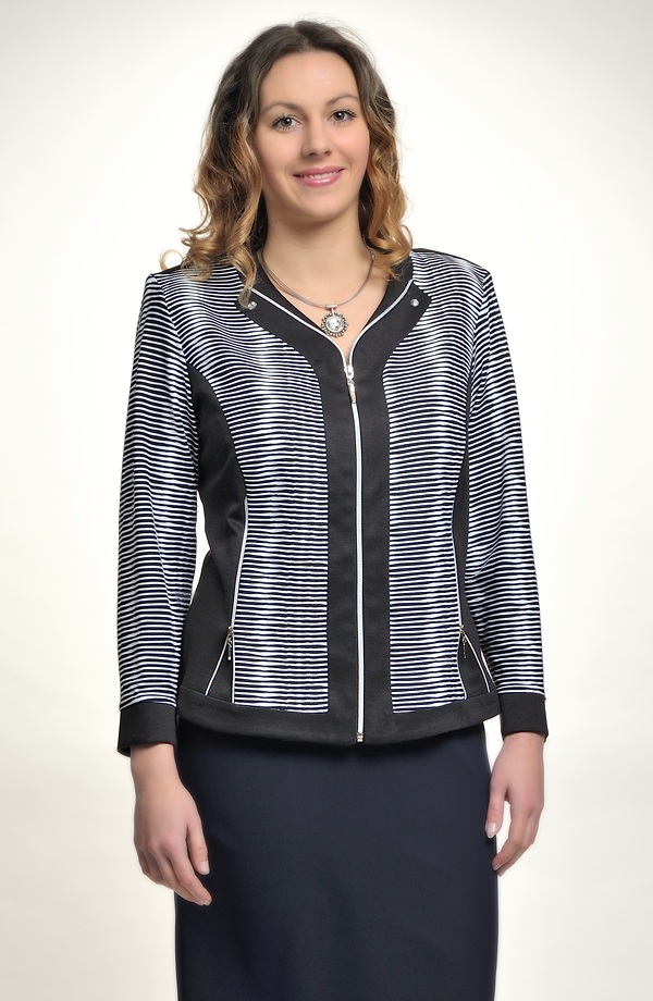 Pleteninová halenka - kabátek s dlouhými rukávy je zdobený zipy.