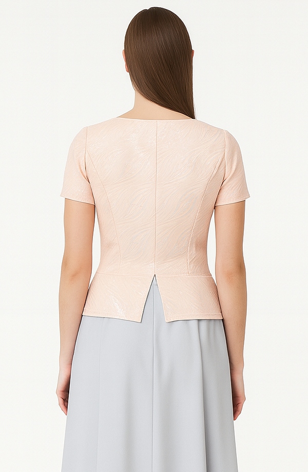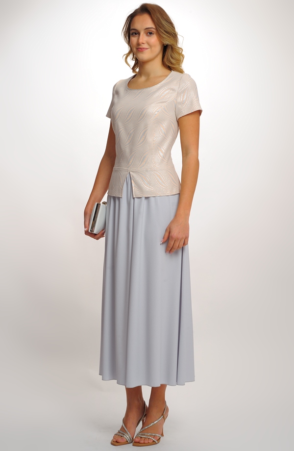 Společenská halenka na svatbu je ušitá z elastického společenského žakáru. Má zajímavý střih s šůskem a zapínání vzadu na skrytý zip. Zdobí ji hlavně vzor, ale i střihové řešení. Decentní třpyt dodává halence slavnostní vzhled, díky kterému je ideální volbou na svatby, večírky, plesy, rodinné oslavy i firemní akce. Halenka je z kvalitního, příjemného materiálu, je pohodlná na celodenní nošení a snadno se kombinuje se společenskou sukní i elegantními kalhotami. Ideální volba pro ženy, které chtějí působit upraveně, vkusně a sebevědomě při každé slavnostní příležitosti.