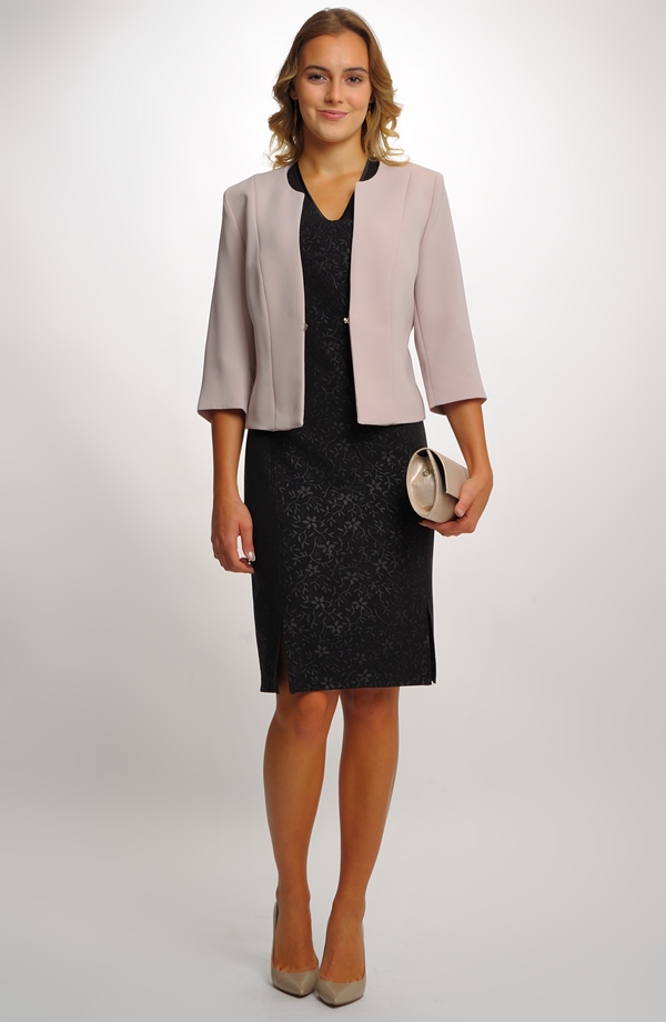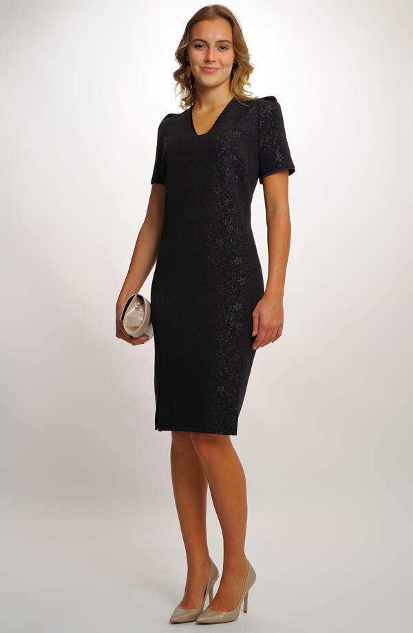 Velmi elegantní dámské černé pouzdrovky jsou vhodné i na svatbu. Elegantní černé šaty jsou základem šatníku. Šaty mají jednoduché střihové řešení, na kterém vynikne zajímavá žakárová tkanina s plastickými jemným vzorem. Šaty působí velmi žensky a dokonale. Podtrhují křivky ženského těla.