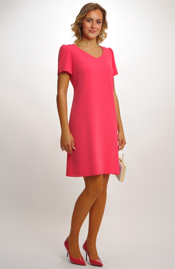 Luxusní společenské šaty jsou vhodné na svatbu nebo na jakoukoliv společenskou akci. Šaty mají V výstřih, malé rukávky a na zádech skrytý zip. Hladký elastický materiál podtrhuje jednoduchý střih šatů. Šaty se hodí jako šaty pro družičky, svatební hosty, šaty po půlnoční nebo jako šaty do společnosti. Dívčí střih, módní materiál a jemná barva dodává šatům mladistvý vzhled.