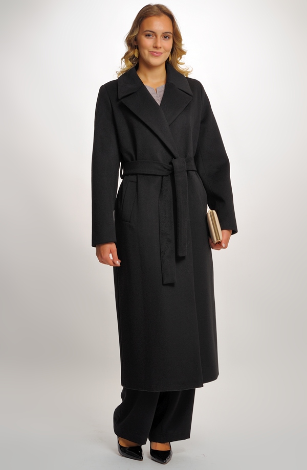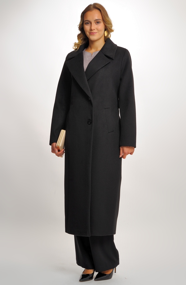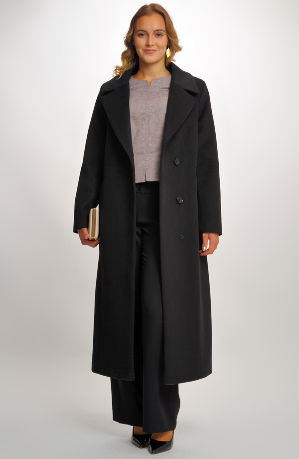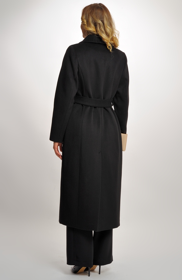 Kabát je vyrobený z černé, kvalitní, vlněné látky.