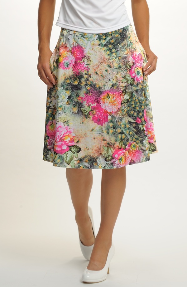Letní sukně se rozšiřuje a vytváří rozevlátou siluetu. Sukně má kapsy a jemný květovaný vzor.