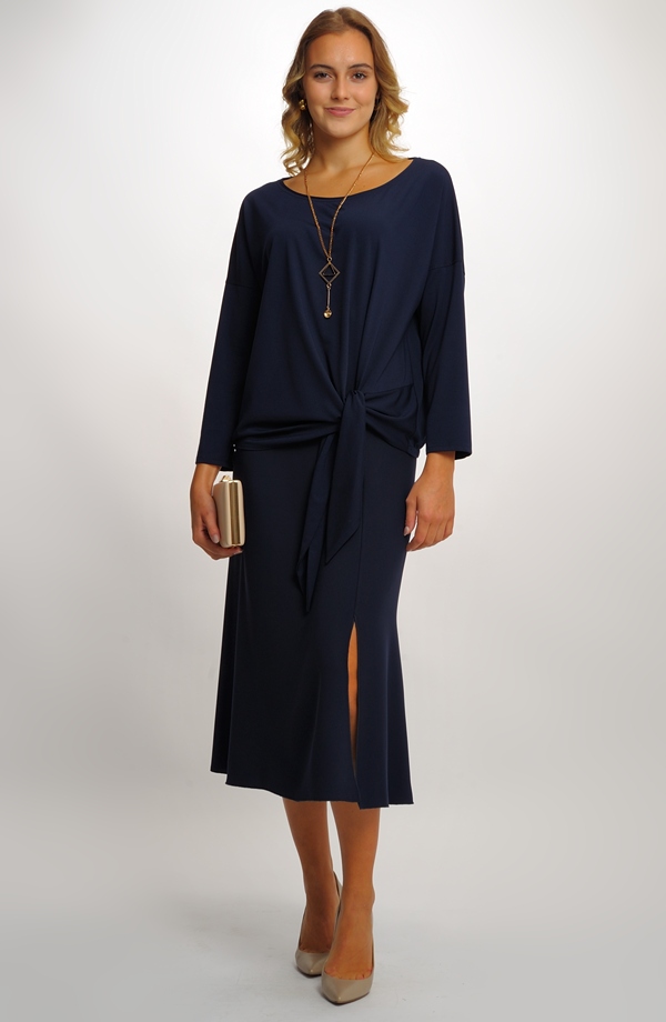 Objevte nadčasovou elegantní midi sukni v tmavě modré barvě, která je perfektní volbou pro svatbu, ples, večírek i pracovní schůzku. Díky decentnímu střihu a rozparku na boku působí sukně velmi ženským a sofistikovaným dojmem.