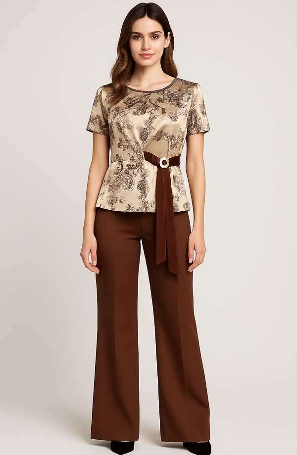 Dámské módní kalhoty v aktuální hnědé barvě mají pásek a módní puky na širokých nohavicích. Kalhoty dělají pěknou postavu, dobře sedí, jsou velmi praktické a nadčasové. Lze je nosit jako společenské kalhoty, ale zároveň se hodí na běžné nošení a do práce. V naší nabídce jsou vhodné k vanilkovému svetříku nebo kabátku v rezavé barvě.