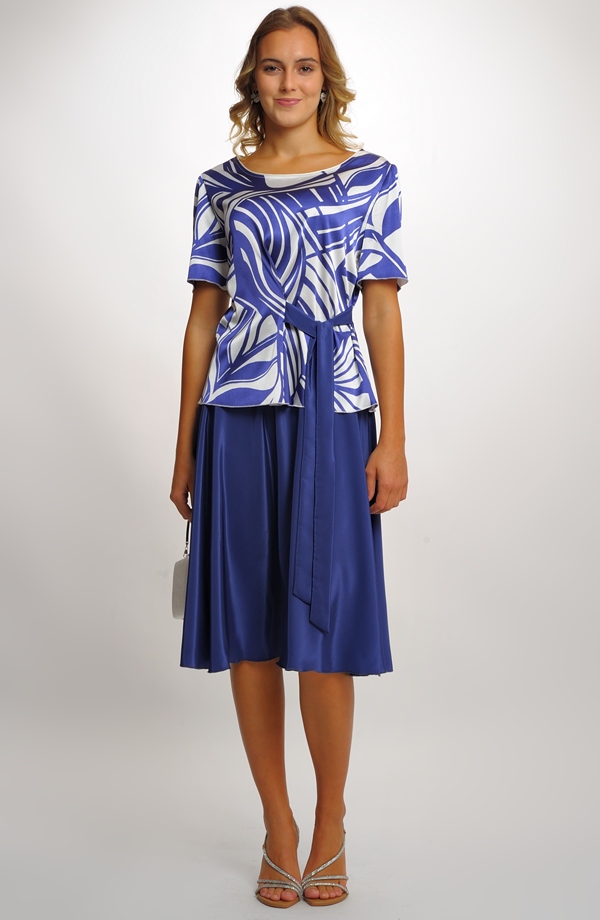 Sukně je kolová a v pase má proti sklady. Model je vhodný pro společenské akce. Hlavně na tancování, protože bohatá sukně se při pohybu krásně vlní a nese.
