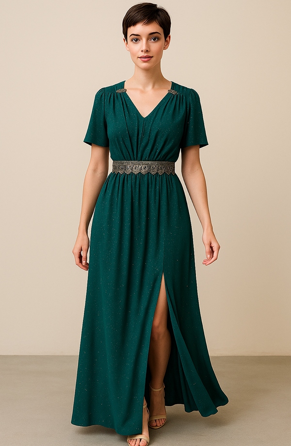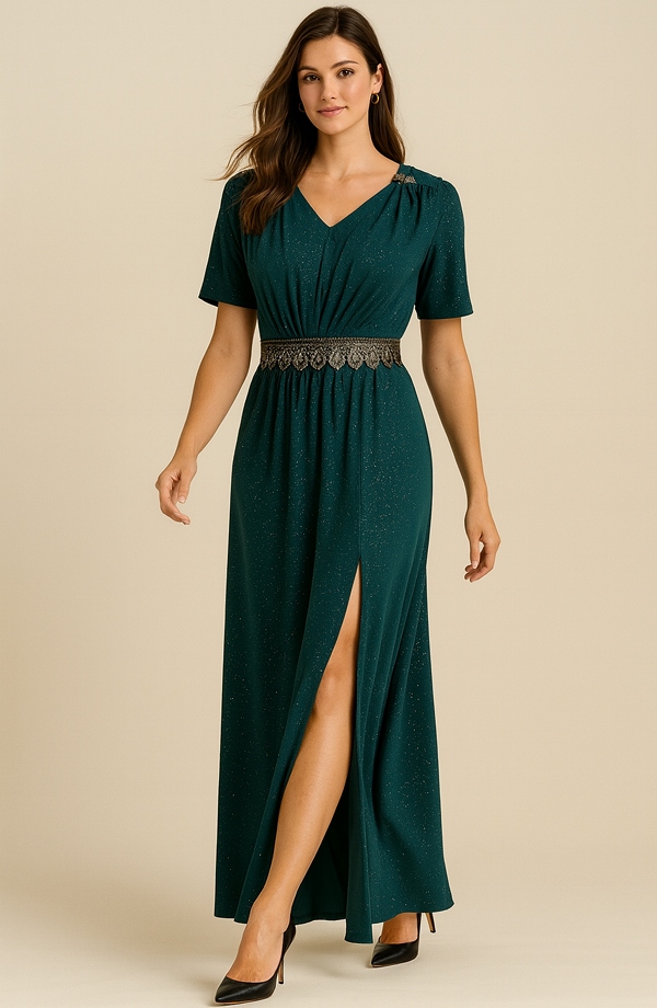 Elegantní dlouhé šaty z kvalitního elastického lurexového materiálu, který se krásně přizpůsobí postavě a zároveň zajistí pohodlné nošení.